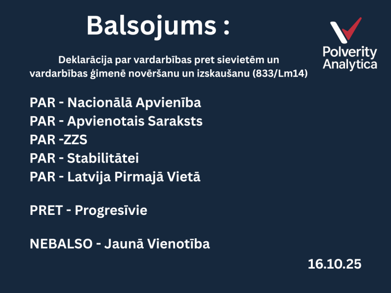Saeimas sēžu balsoju rezultāti, ar visiem balsojumu rezultātiem iepazīsties saiema.lv mājaslapā, sadaļā ''14 Saeimas sēžu stenogrammas''